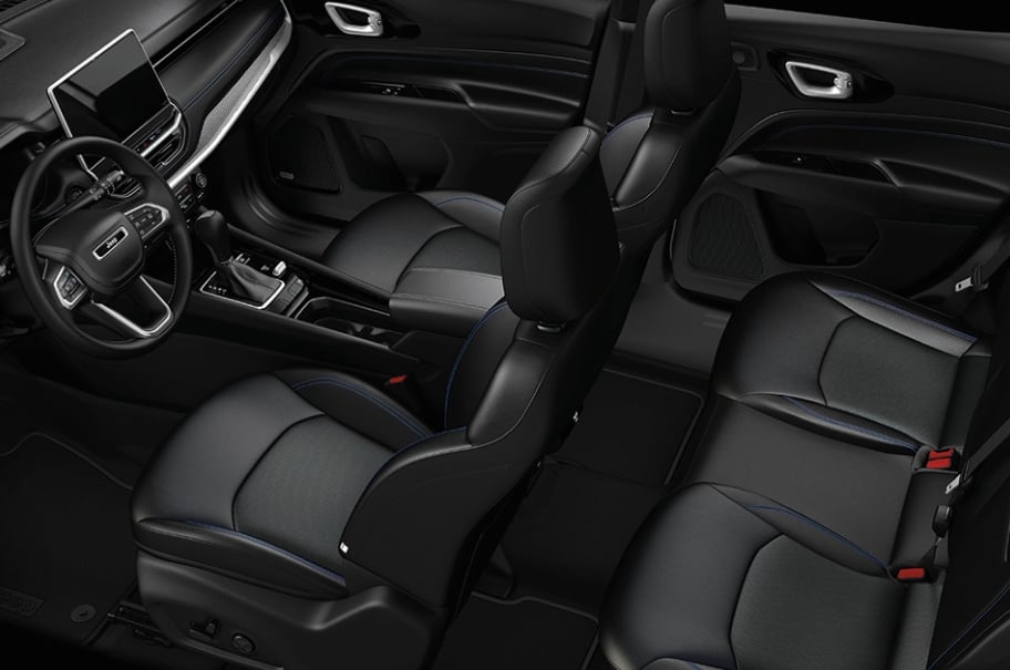 Inside, the Compass feels welcoming the moment you step in. Available leatherette seats add durability and comfort for everyday use. The layout feels open and uncluttered. Slim air vents and textured surfaces give it a refined look. Seating is comfortable for long drives or quick errands. It feels like a space made for real life.